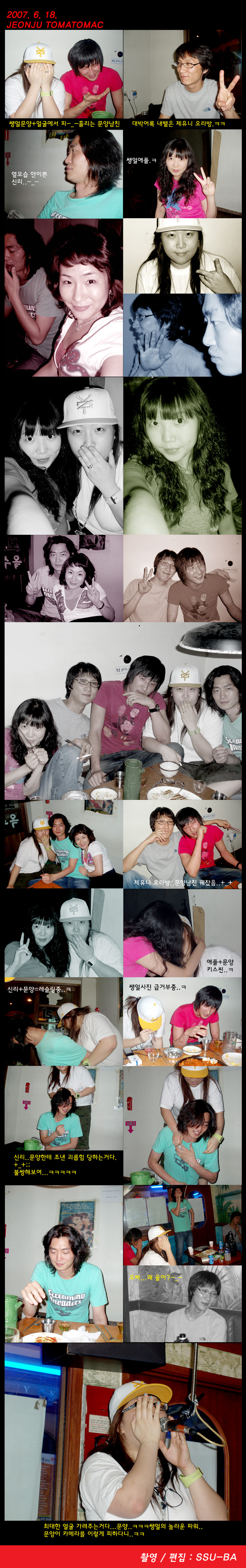 쑤바....배연정 닮은 채연.....으헤헤헤헤~~~~ 단체 사진 찍은거 보믄...다들 젓가락 들고 있어.....젓가락 게임 중... 노믄 디지는 거다....ㅋㅋㅋㅋ 쑤바야....내가 쓰고 남은 스트래아트 크림 주까... 겁나 마이 남았는디....ㅋㅋㅋ 사랑 앞에 용감해지는 제유니 형님....ㅋㅋㅋㅋ 엄마전화를 애타게 찾았다지.... 대실, 숙박 요금을 지역별로 꿰고 있던데....ㅋㅋ