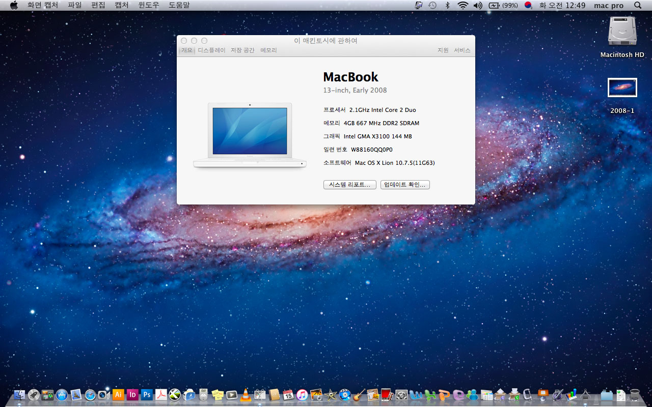 2008년 화이트 맥북 13인치- 맥 디자인프로그램들이 사진처럼