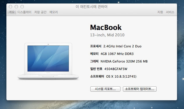 2010년 유니바디 화이트맥북 마지막모델이라 인터넷도 빠릅니다