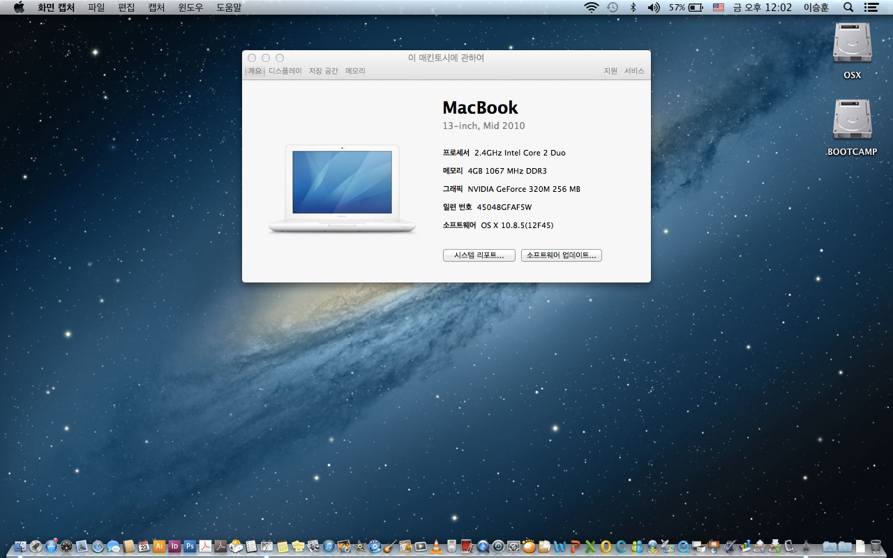 2010년 화이트 맥북 13인치- 맥 디자인프로그램들이 사진처럼