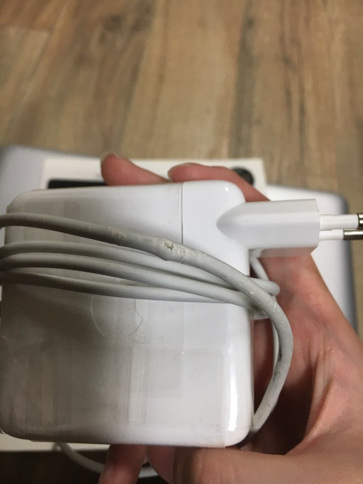 사진으로 보이듯이 맥북 자체에 하자는 없습니다. 하지만 충전선 부분을
