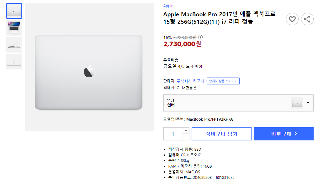 맥북(프로) 리퍼 제품 판매 합니다.